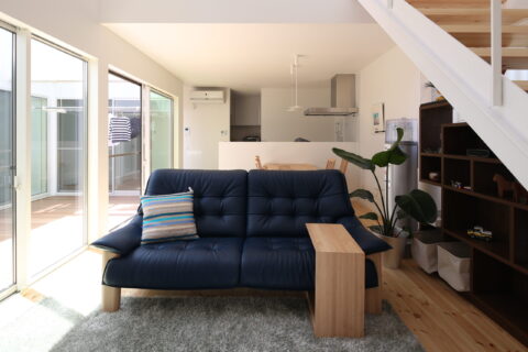 採光は南からだけでなく家全体で南側からの光にこだわり過ぎてしまうと、カーテンを閉め切った場合、家の中は暗くなってしまいます。また、日の光が強すぎて、熱や眩しさを感じてしまうこともあるでしょう。ただ、南側の方が日当たりが良いとはいえ、日中の太陽は南にあるわけではなく上にあります。SIMPLE NOTE(シンプルノート)では、日の光を南からはもちろん、家全体から採り入れる設計になっています。家の要所にある、外からの視線が入らないフロストガラスや吹き抜け、計算された反射光によって、自然で心地の良い光が家全体を包み込みます。例え南向きの土地じゃなくても、「外観からは想像できない室内の自然な明るさ」をSIMPLE NOTEが可能にします。